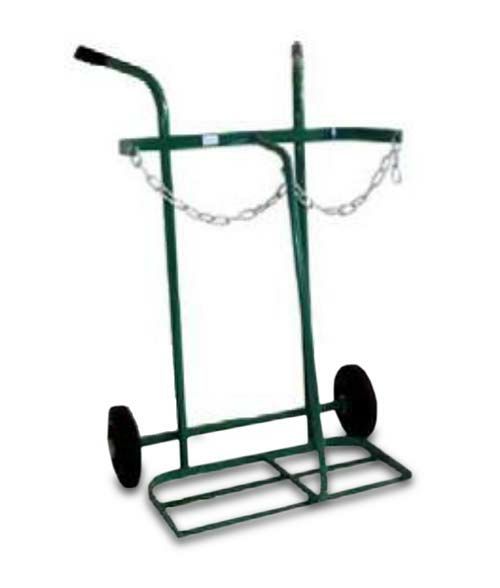 This Air Products Industrial Gas cylinder trolley (bottle trolley) is designed to take one each of the large size X50 or X47 Oxygen – Acetylene cylinders.